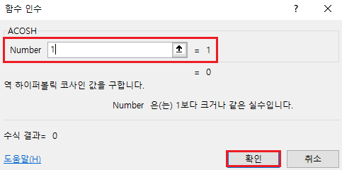 단계 2. 하이퍼볼릭 코사인 값을 입력합니다. 하이퍼볼릭 코사인 값은 1이상의 실수입니다.