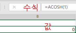 =ACOSH(하이퍼볼릭 코사인 값)