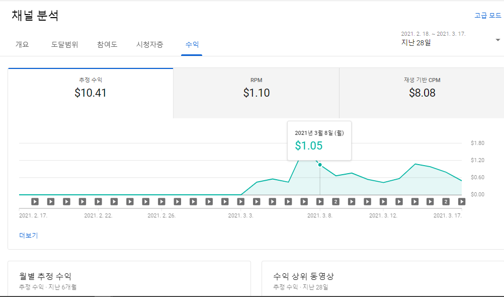 2021년 3월 3일에 수익 창출 채널 조건을 만족시켰어요.